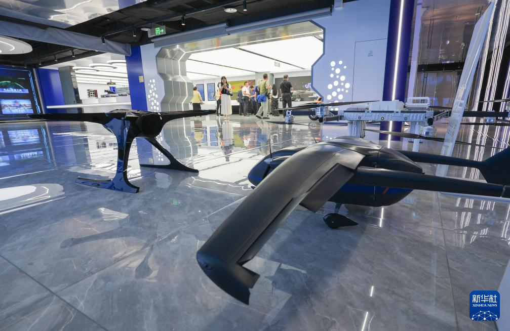 9月9日,在位于无锡的长三角空间信息数字产业特色示范园,观众在观摩企业设计生产的无人机模型。
