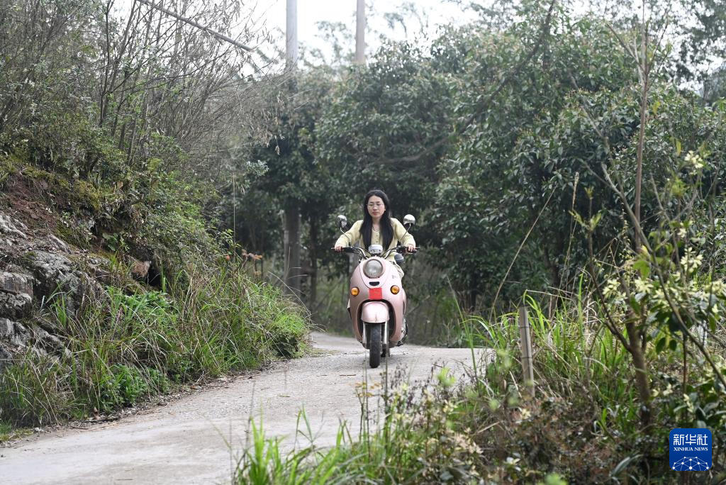 在广西灌阳县洞井瑶族乡野猪殿村,“95后”老师赵艳骑着电动自行车从学校回家(3月27日摄)。
