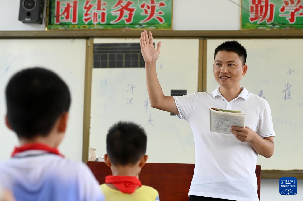 在广西南宁市邕宁区中和镇中心学校那才教学点,“85后”老师滕永社在给学生上课(9月5日摄)。