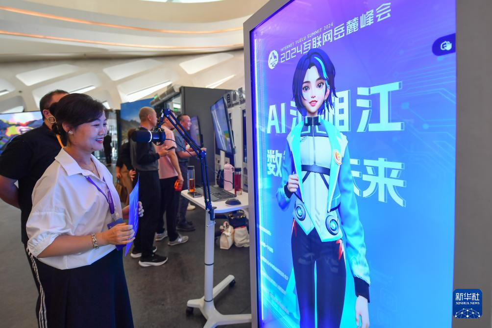 9月9日,参会者在2024互联网岳麓峰会现场与AI数字人“小麓”互动。