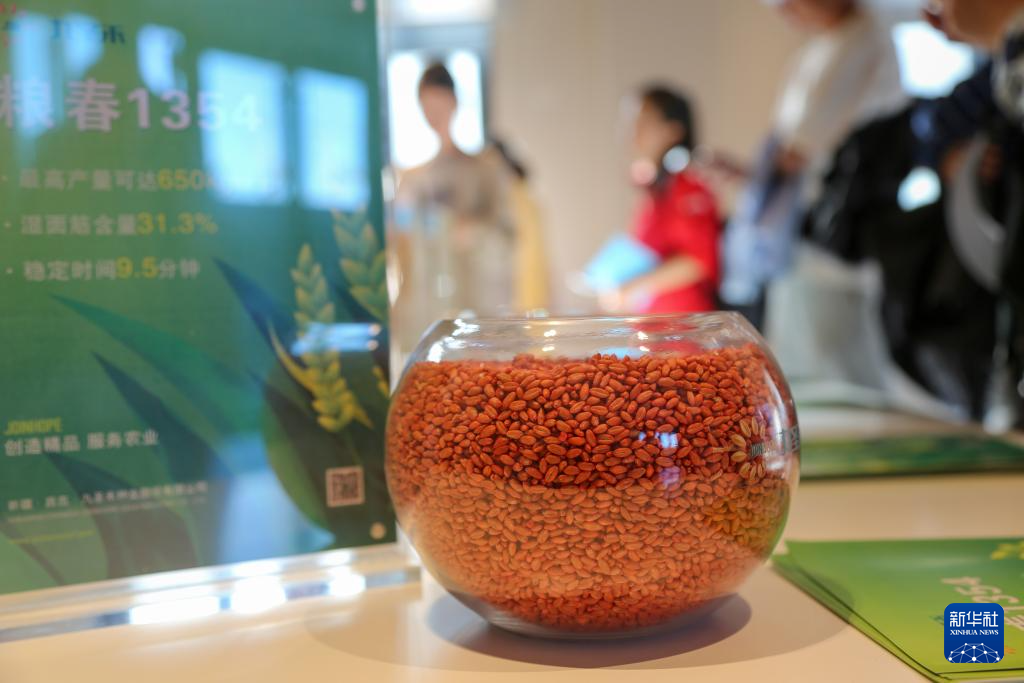 9月9日在新疆生产建设兵团第九师白杨市一家制种企业展厅内拍摄的种子。