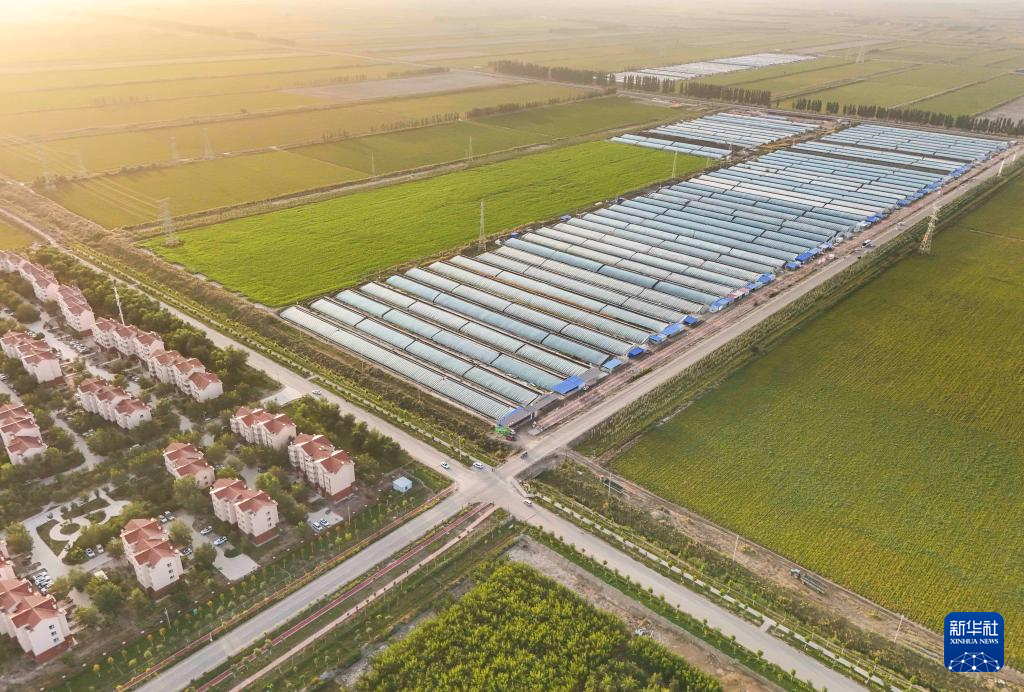 这是9月8日在新疆生产建设兵团第十三师新星市红星一场拍摄的设施大棚(无人机照片)。