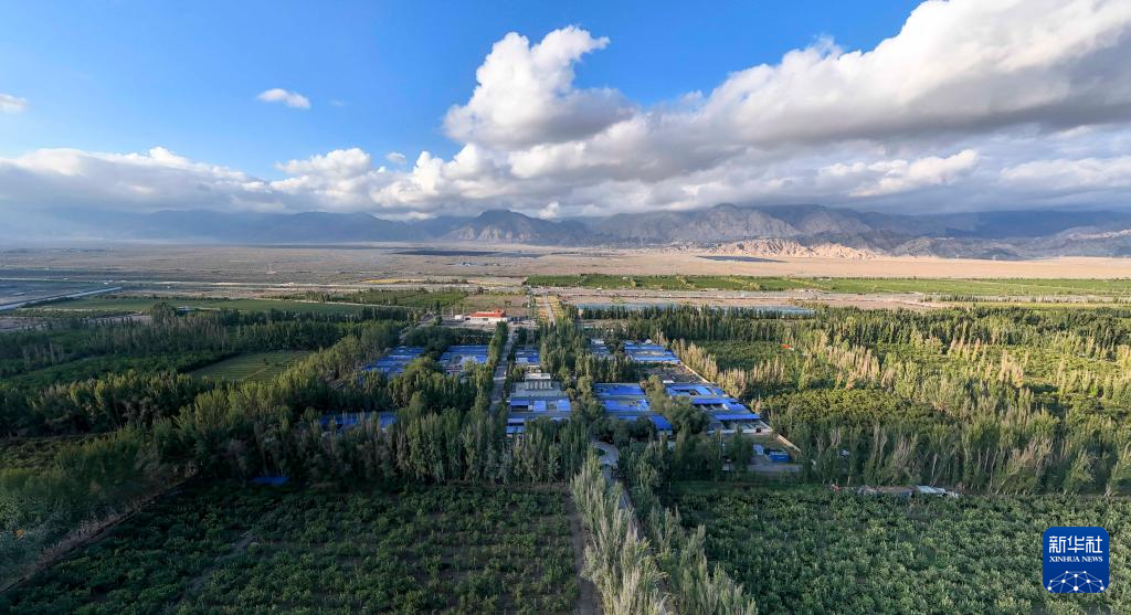 这是9月5日在新疆生产建设兵团第二师铁门关市二十二团河畔镇拍摄的农田、冬枣设施大棚(无人机照片)。