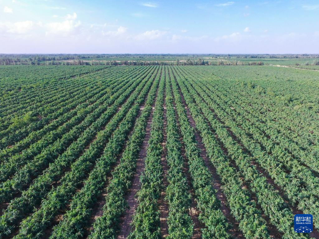 这是9月4日在新疆生产建设兵团第十四师昆玉市二二四团玉园镇拍摄的枣园(无人机照片)。