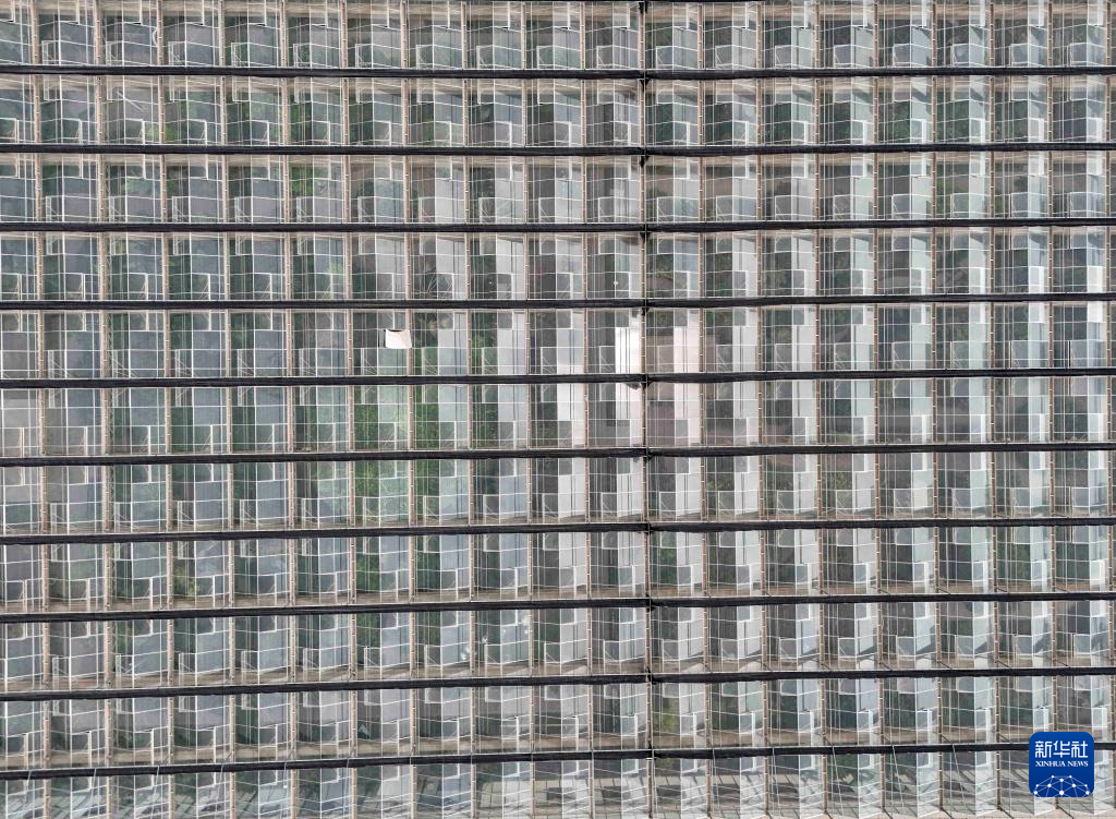 这是9月8日在新疆生产建设兵团第十三师新星市拍摄的一处花卉设施大棚(无人机照片)。