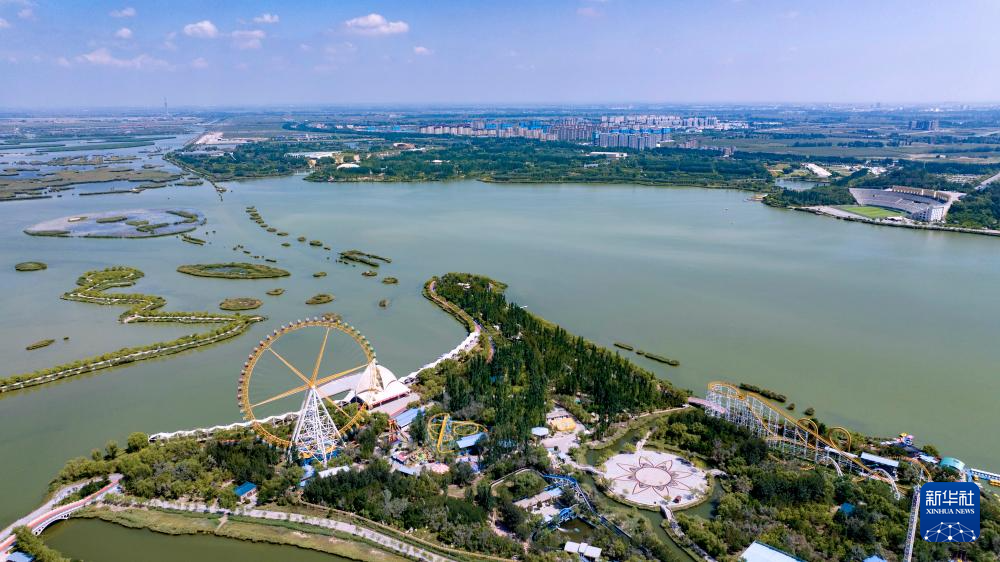这是8月28日拍摄的宁夏银川市阅海国家湿地公园(无人机照片)。