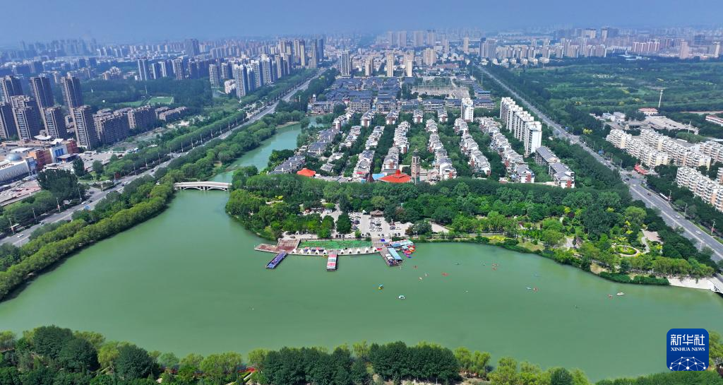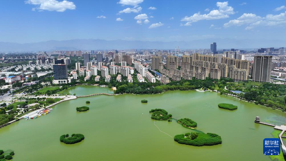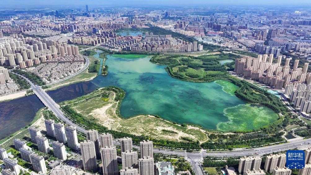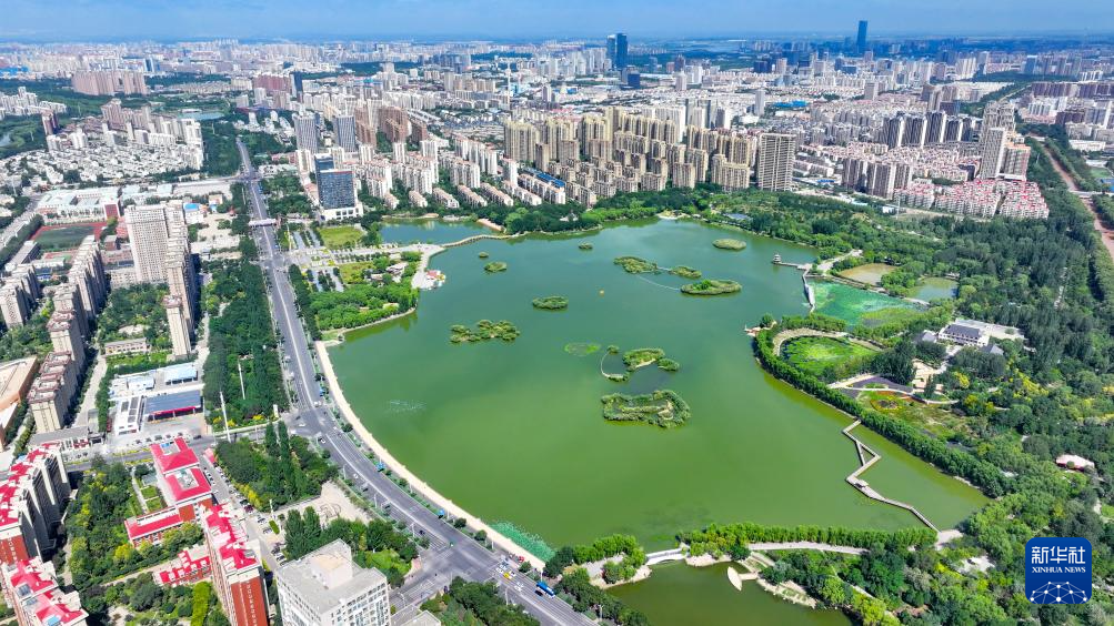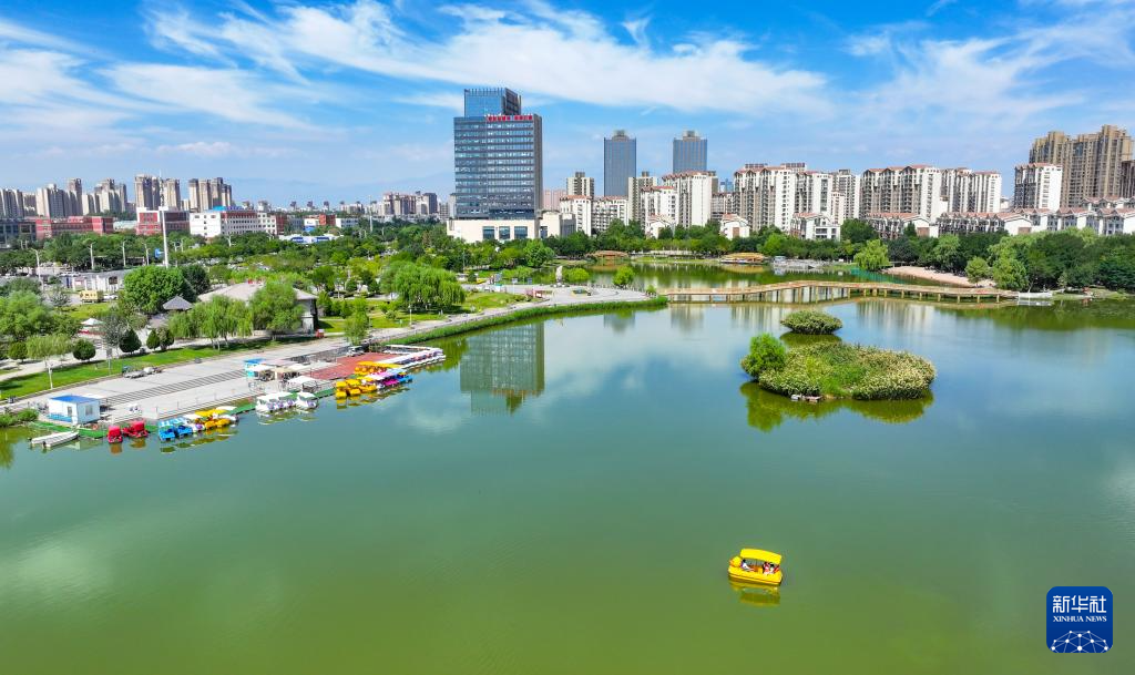 这是8月22日拍摄的银川市兴庆区徕龙公园(无人机照片)。