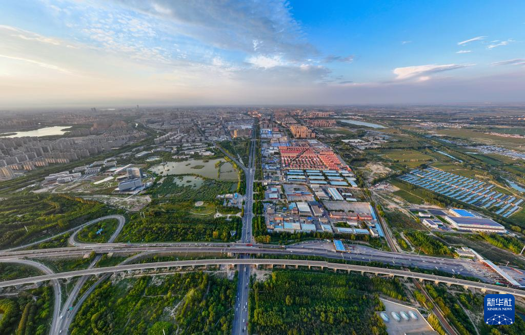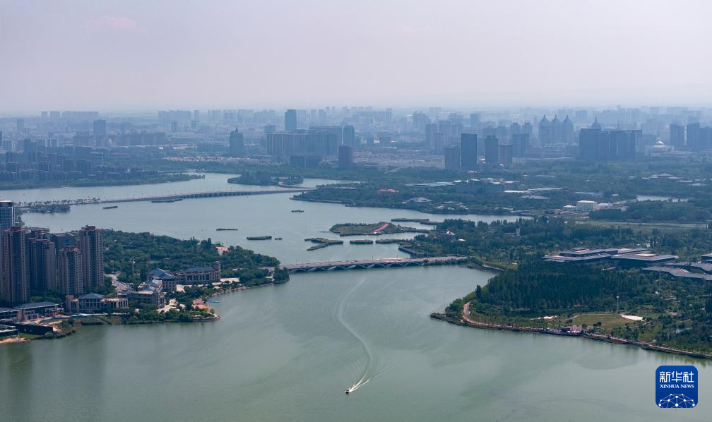 这是6月5日拍摄的宁夏银川市典农河(无人机照片)。