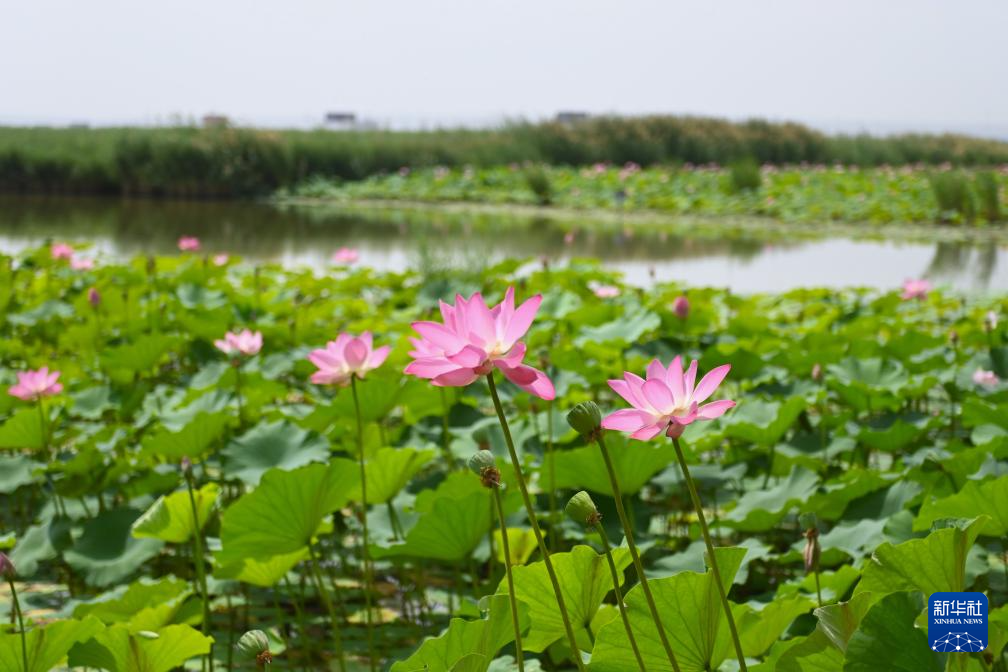 这是7月13日在宁夏银川鸣翠湖国家湿地公园拍摄的荷花。