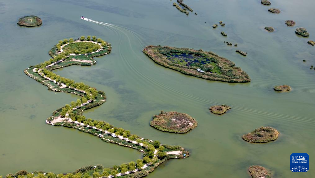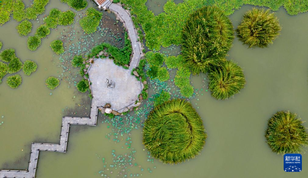 这是6月11日拍摄的宁夏银川市宝湖国家城市湿地公园(无人机照片)。