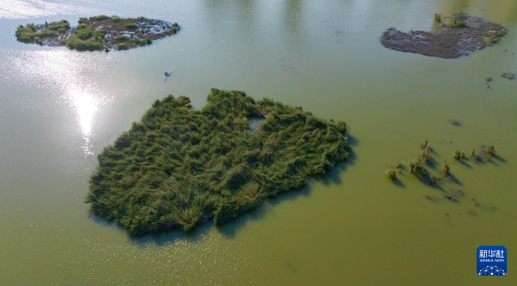 这是8月22日拍摄的位于银川市兴庆区的孔雀湖(无人机照片)。