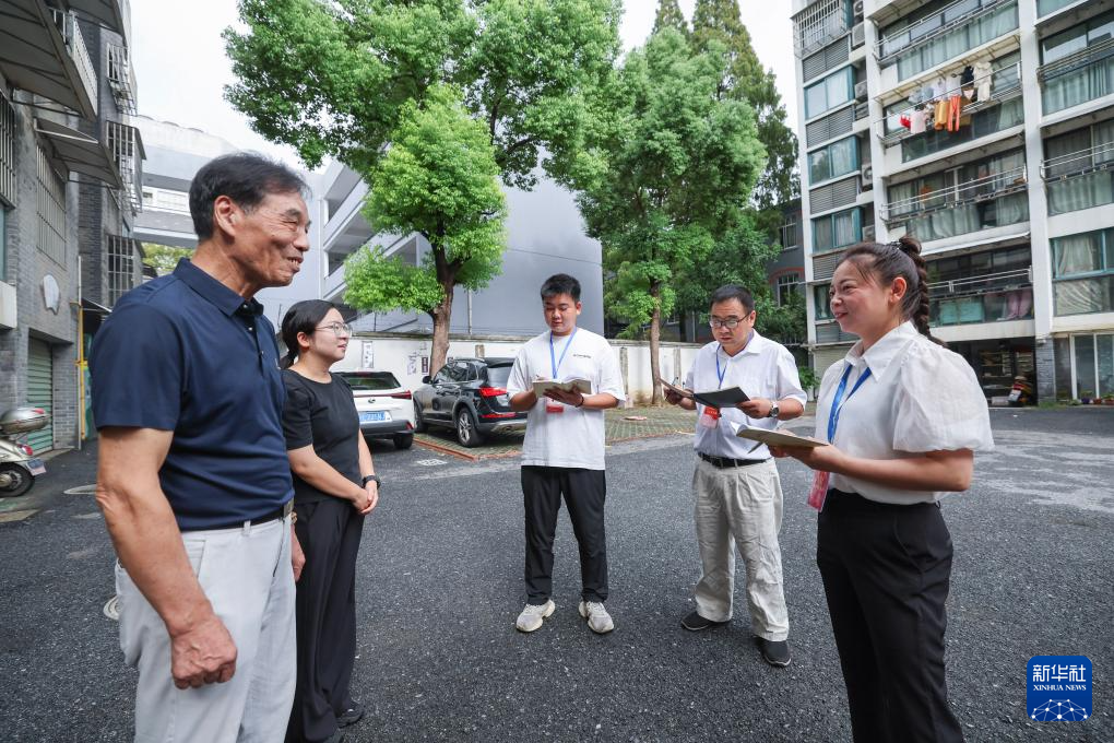 9月11日,湖州吴兴区人大代表(右一、右二)和飞英街道议政员(右三)及塔下街社区工作人员在社区停车场听取居民关于“停车难”问题的反馈,并征集相关意见建议。