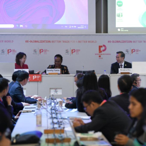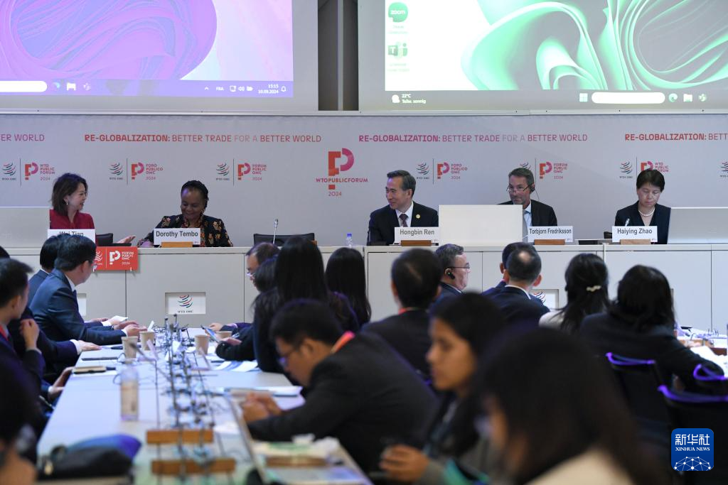 在世界贸易组织2024年公共论坛期间,中国贸促会与国际贸易中心10日共同举办以“构建更加绿色和具有韧性的供应链”为主题的研讨会,吸引国际组织、商协会、智库机构和企业代表等100余人参会。
