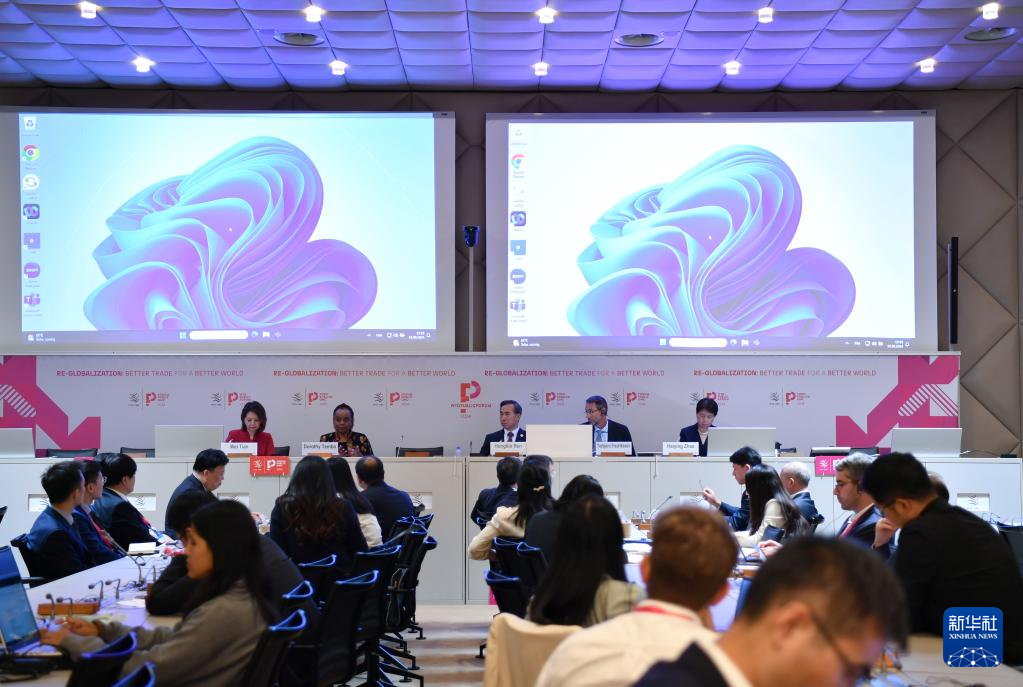 这是9月10日在瑞士日内瓦世界贸易组织总部拍摄的“构建更加绿色和具有韧性的供应链”研讨会现场。