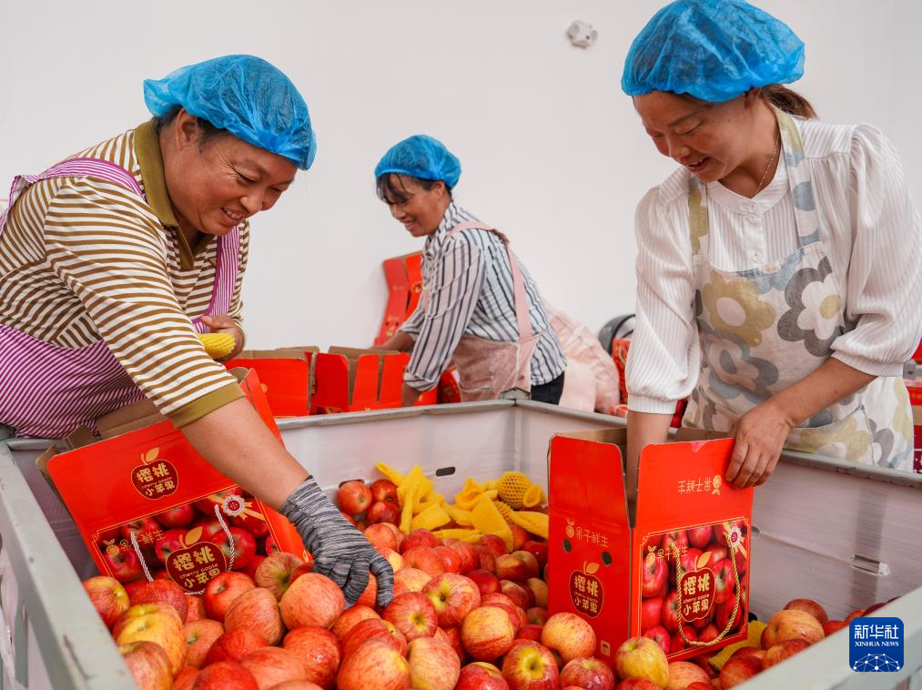 9月10日,在昭通市鲁甸县一企业内,工作人员在打包苹果。