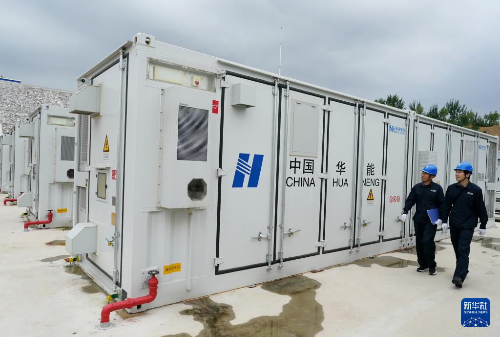 9月10日,工人在位于河北省平山县的西柏坡百兆瓦级新型电力系统示范工程建设工地工作。