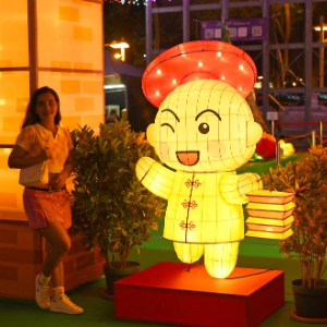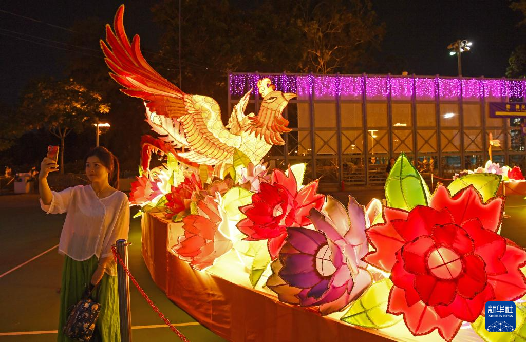 9月12日,观众在彩灯会上自拍。