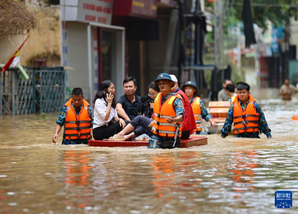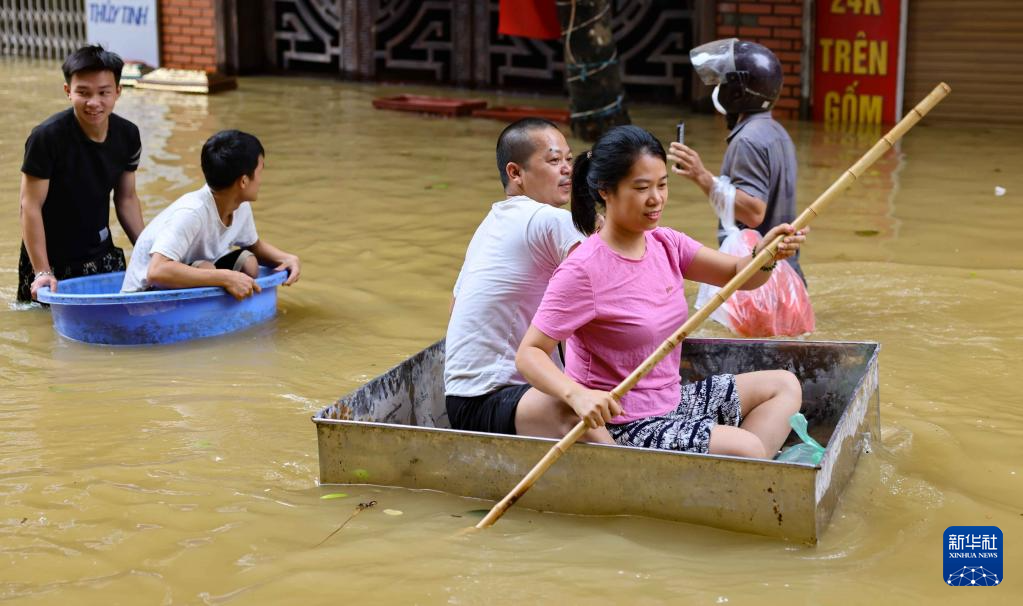 9月12日,在越南首都河内市嘉林县,救援人员转移受灾民众。