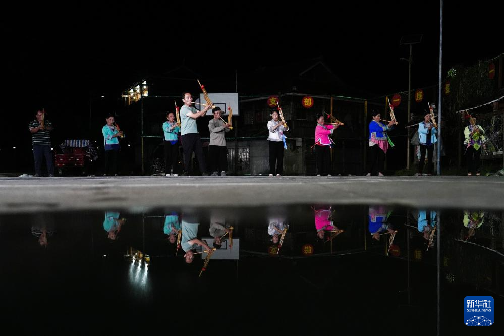 在乌英苗寨妇女夜校,梁安合(右一)指导妇女们练习吹芦笙(2024年9月10日摄)。