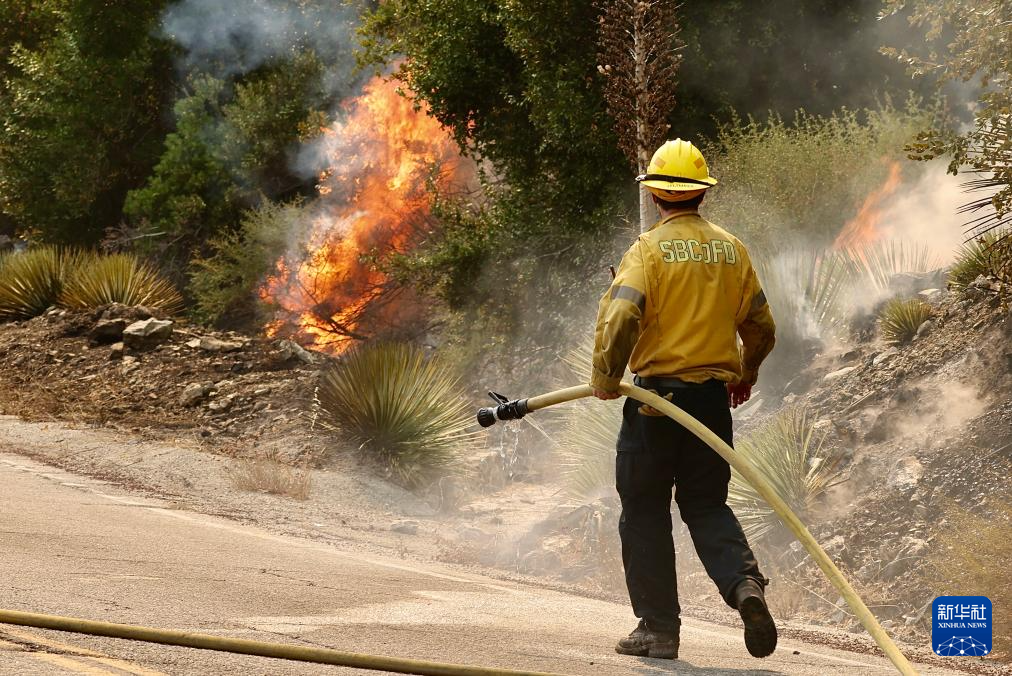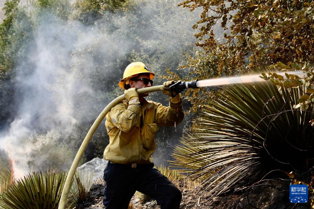 9月11日,在加利福尼亚州洛杉矶县,消防员进行灭火作业。
