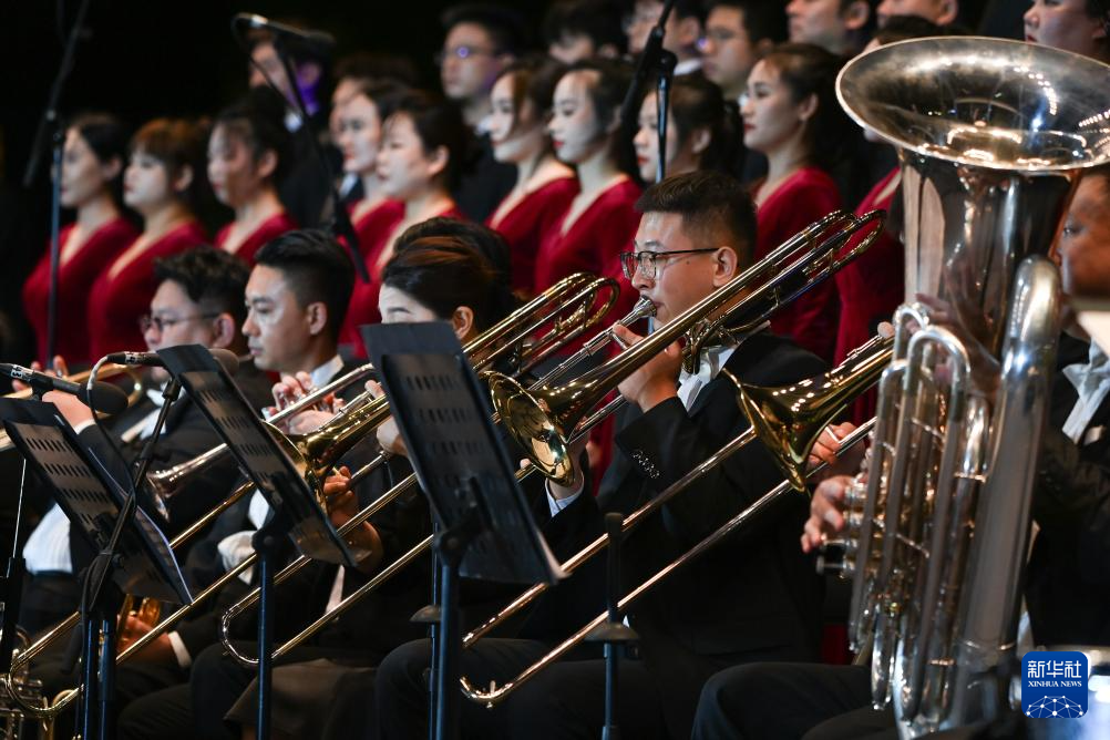 9月13日晚,西安交响乐团在公演现场演奏。