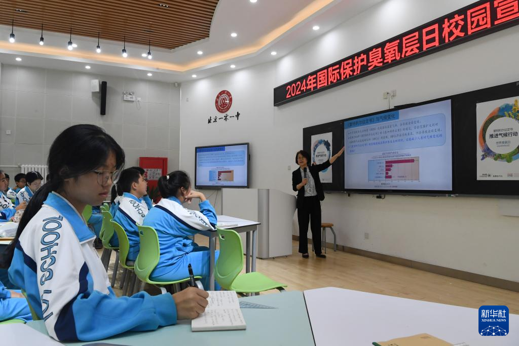 当日,为迎接9月16日第30个国际保护臭氧层日,由生态环境部宣传教育中心主办的2024年国际保护臭氧层日校园宣传活动在北京一零一中学举行,现场举行了科普讲座、互动问答、绘制主题宣传画等活动,让同学们深入了解臭氧层相关知识,提升环保意识。
