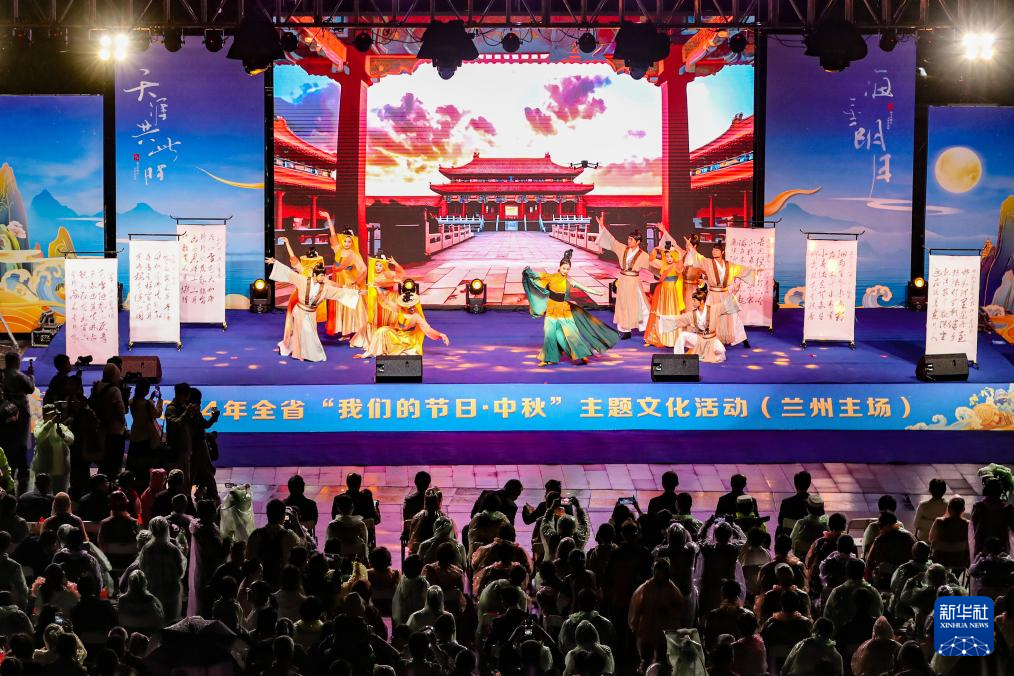 9月13日,在兰州市雁滩公园,演员表演舞蹈节目《中秋月》。