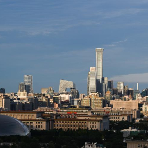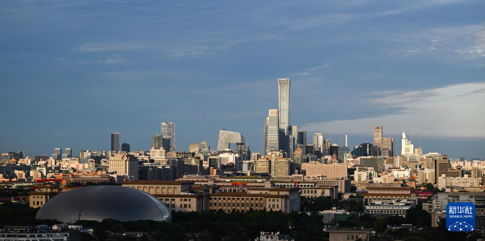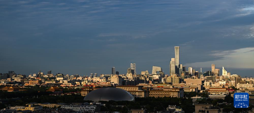 9月14日,夕阳照亮北京天际线的建筑群。