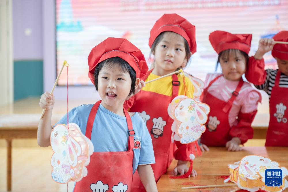 9月13日,广西北海市第一幼儿园小朋友参加喜迎中秋佳节活动。