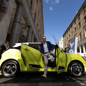 这是9月13日在意大利都灵圣卡洛广场拍摄的参展车。