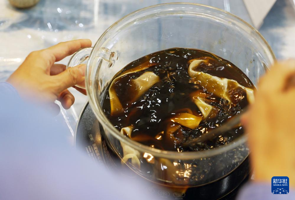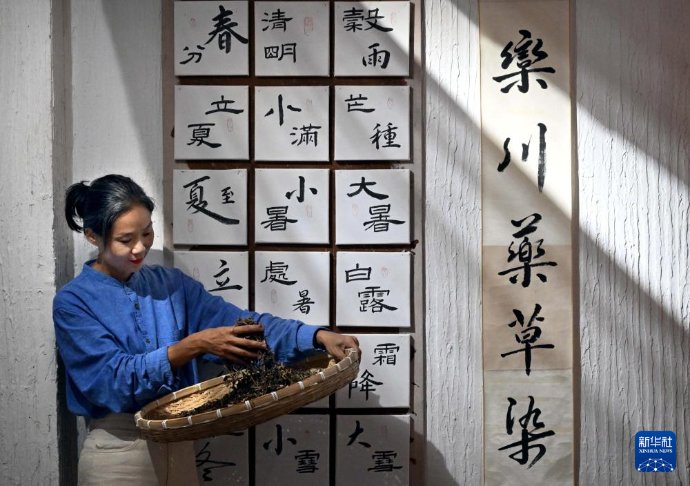 王丹凤在位于洛阳栾川的非遗研学基地内准备植物染料(9月13日摄)。
