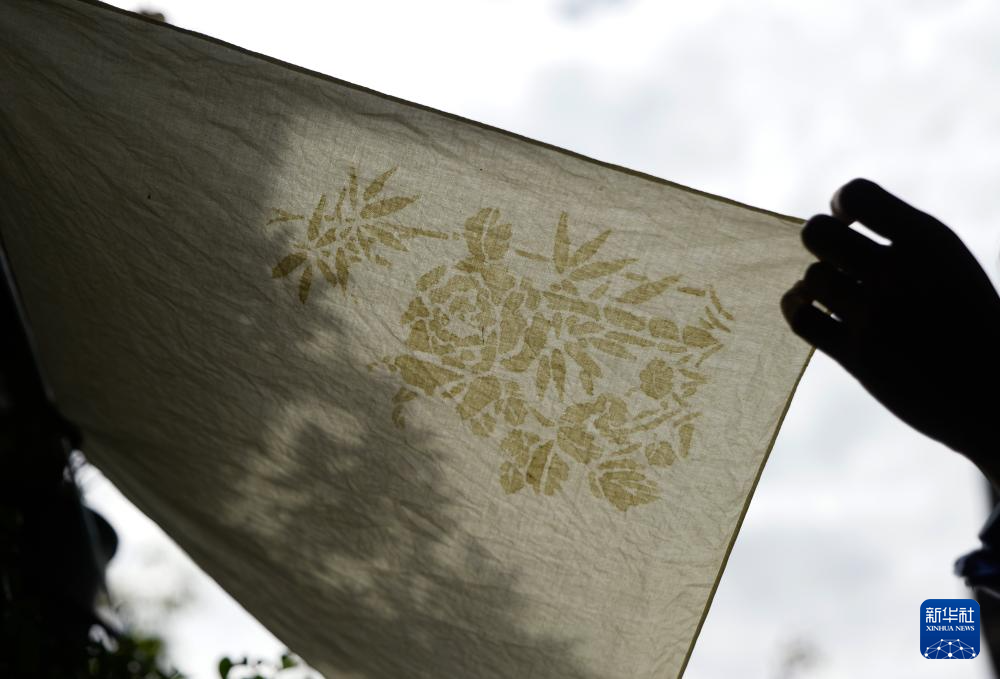 王丹凤在位于洛阳栾川的非遗研学基地内进行粗布印染(9月13日摄)。