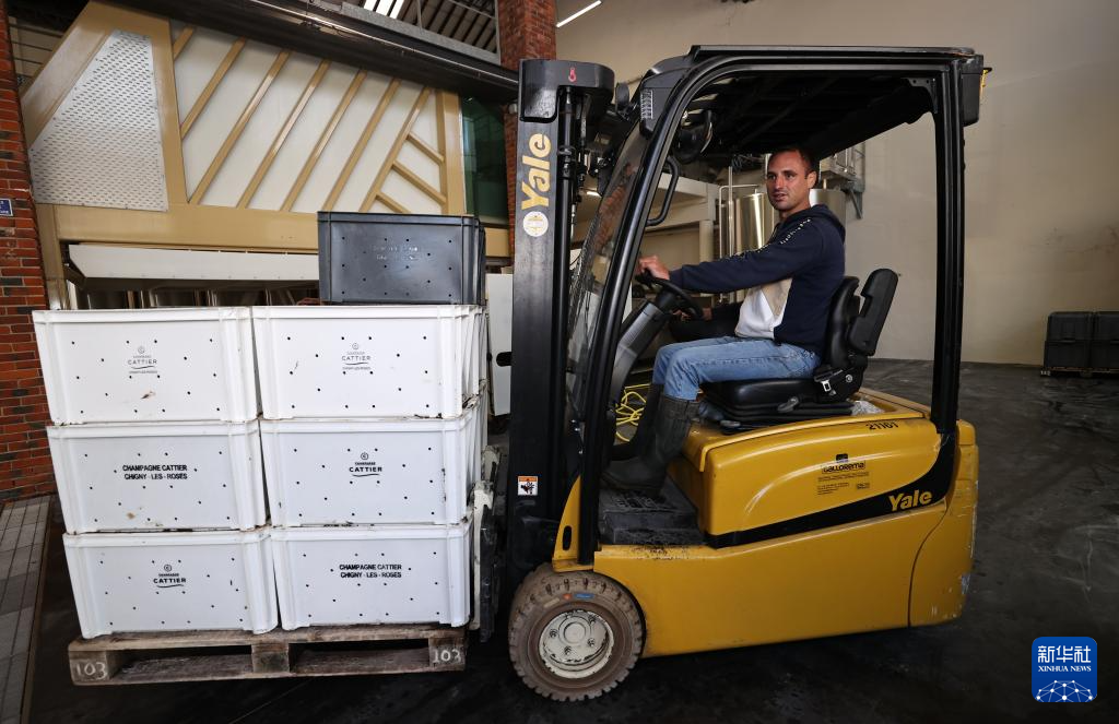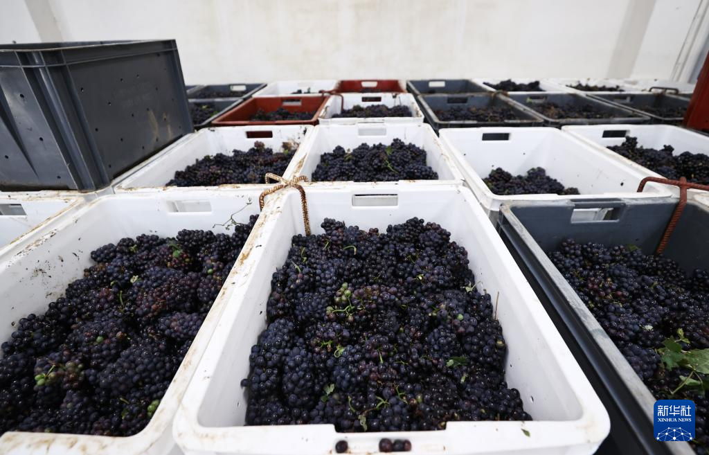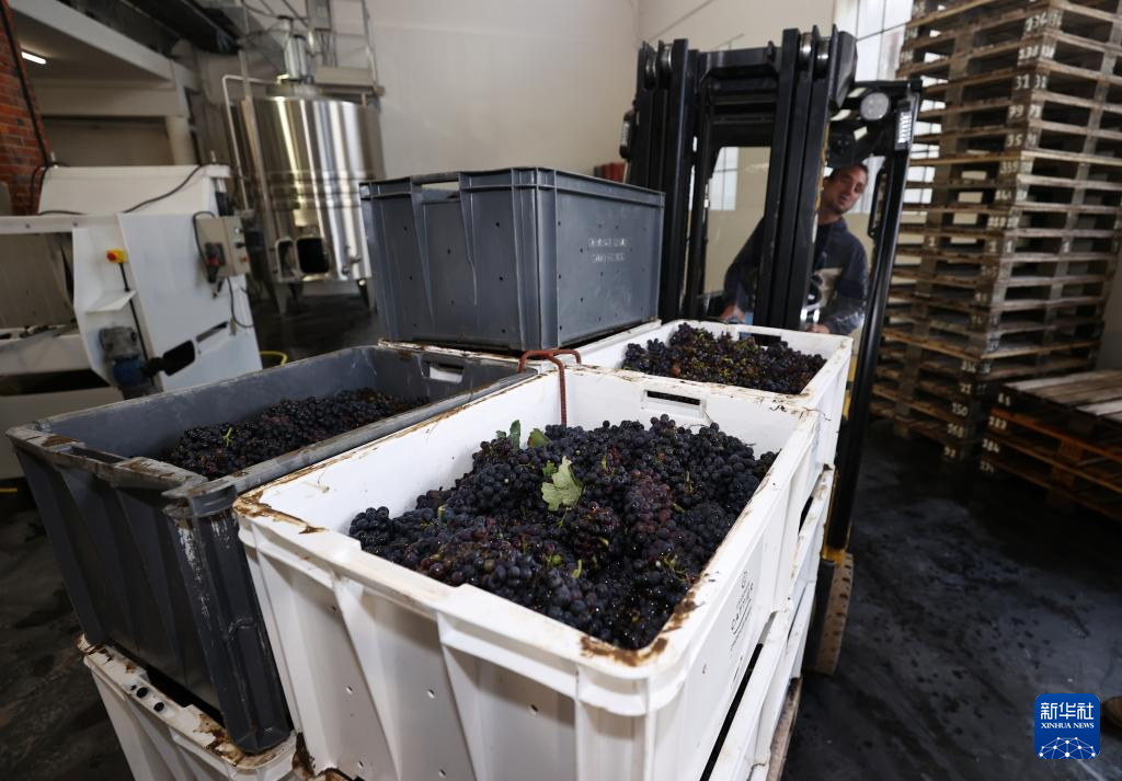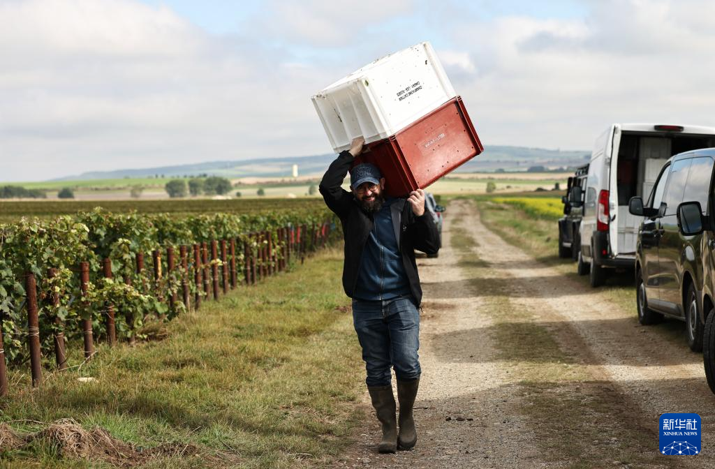 这是9月13日在法国兰斯附近的希尼莱罗斯拍摄的采摘装箱的葡萄。