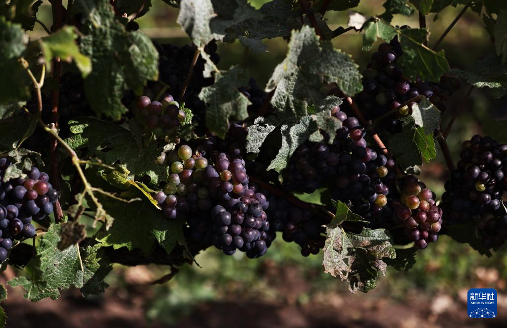 这是9月13日在法国兰斯附近希尼莱罗斯拍摄的等待采摘的葡萄。