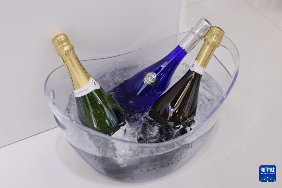这是9月12日在2024服贸会法国馆佳醍亚香槟展台拍摄的冰镇香槟酒。