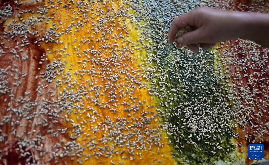 9月15日,在青海省海东市互助土族自治县东山乡白牙合村,一名土族群众在制作面花。