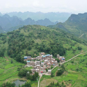 这是广西环江毛南族自治县下南乡中南村上义屯(无人机照片,8月29日摄)。