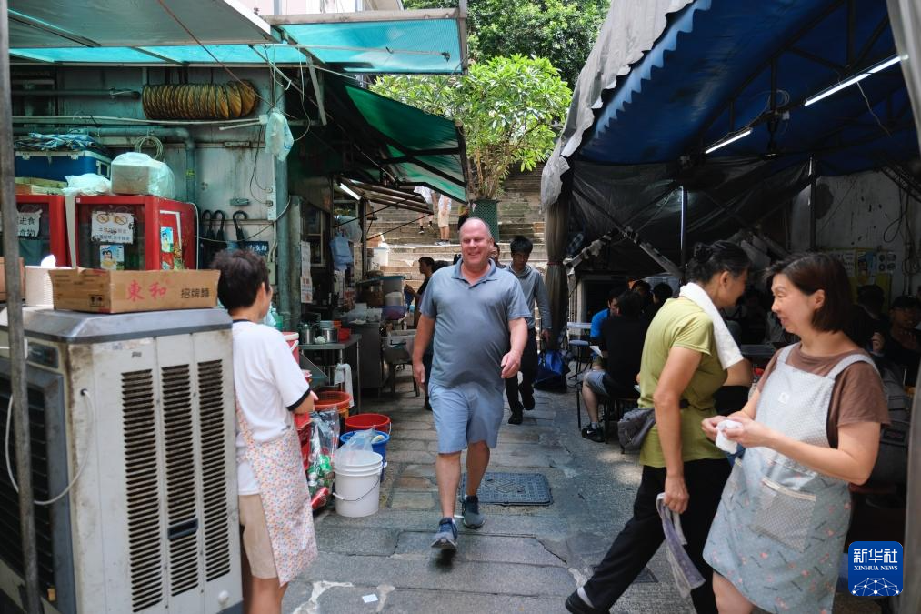 62岁的纽约客戴尔·科斯洛走在香港中环的街道中(7月5日摄)。