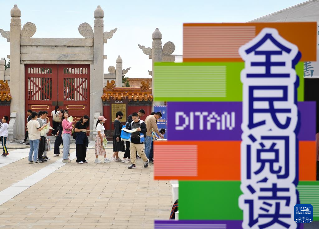 9月15日,市民在地坛公园方泽坛外排队参与书市“集章打卡”活动。