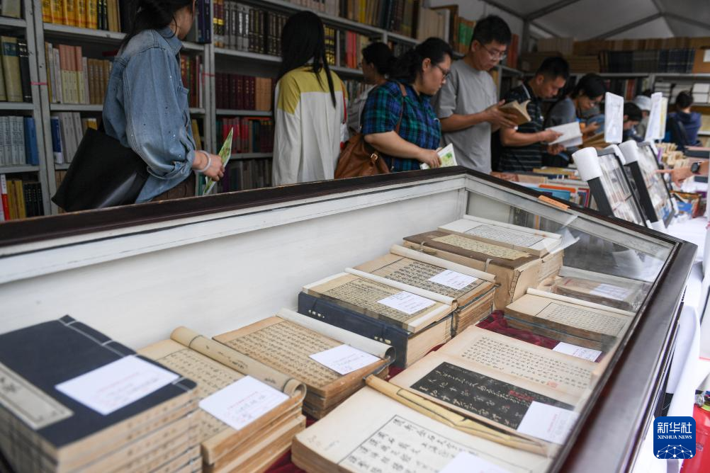 9月15日拍摄的地坛书市“旧书新知”专区展销的古旧书籍。