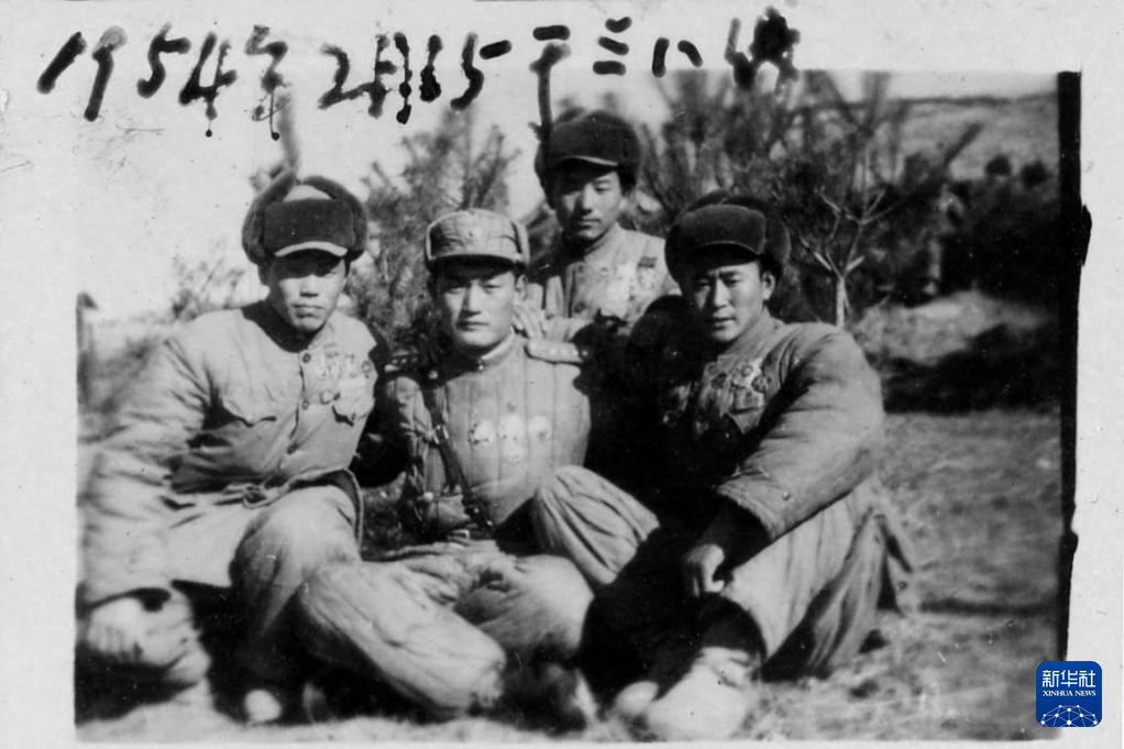 黄宗德(右一)与战友在朝鲜合影留念(1954年2月15日摄)。