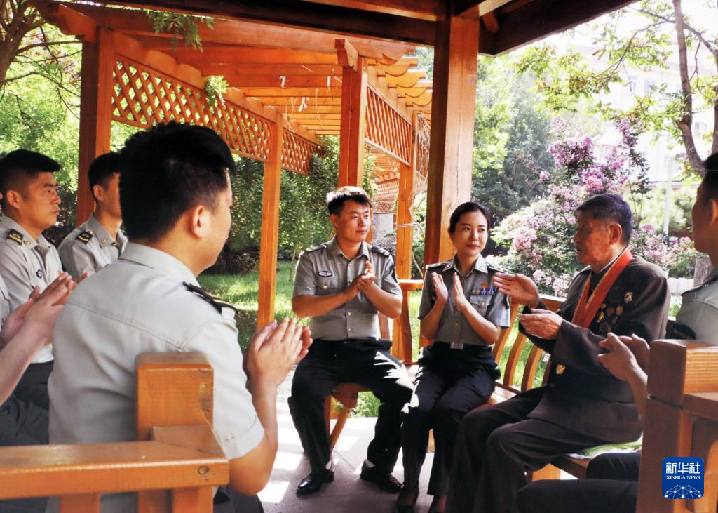黄宗德给青年官兵讲述战斗故事(2019年7月27日摄)。