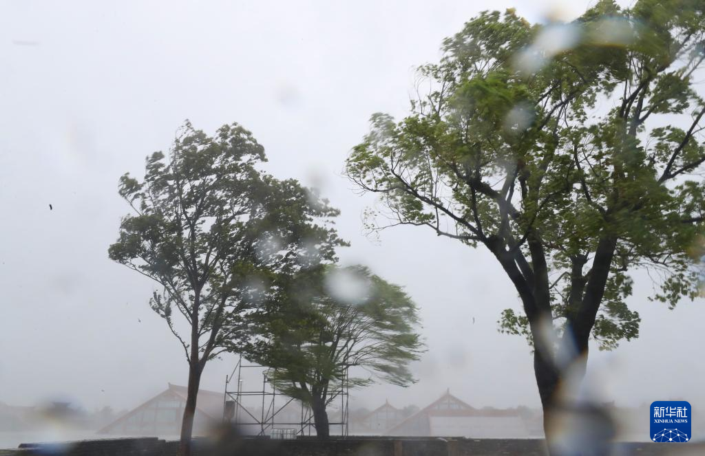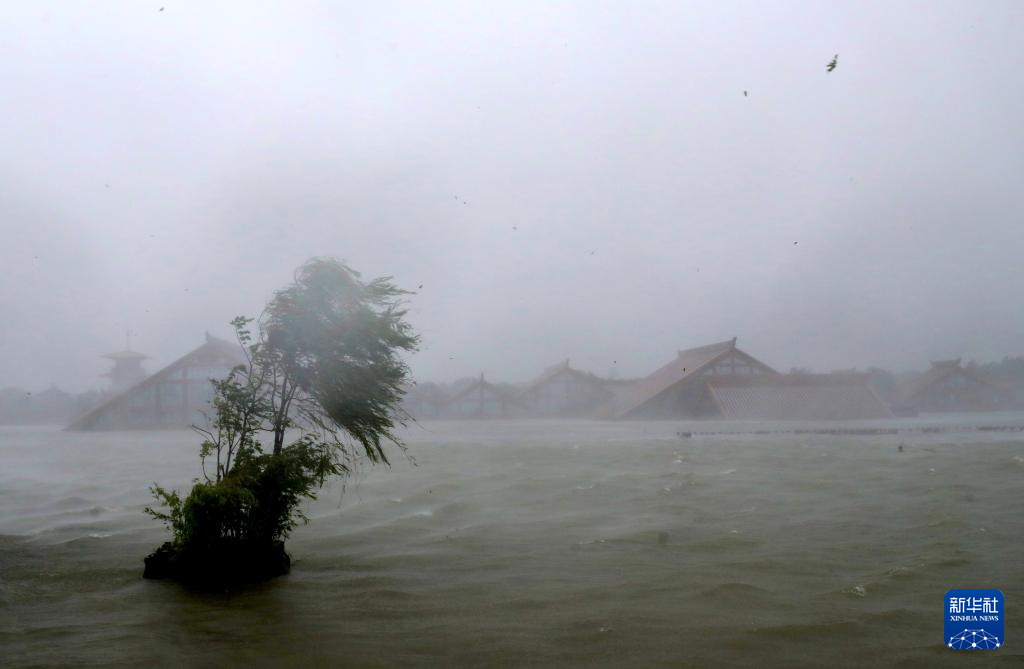 9月16日拍摄的强台风“贝碧嘉”到来时的上海松江广富林遗址公园。
