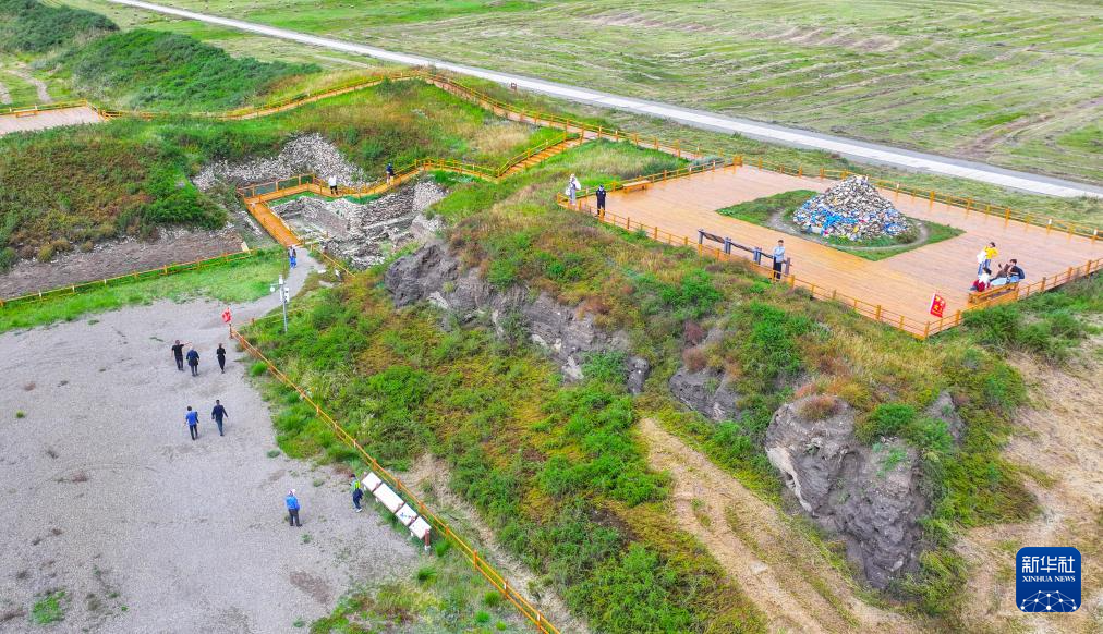 9月16日,游客在元上都遗址游览(无人机照片)。
