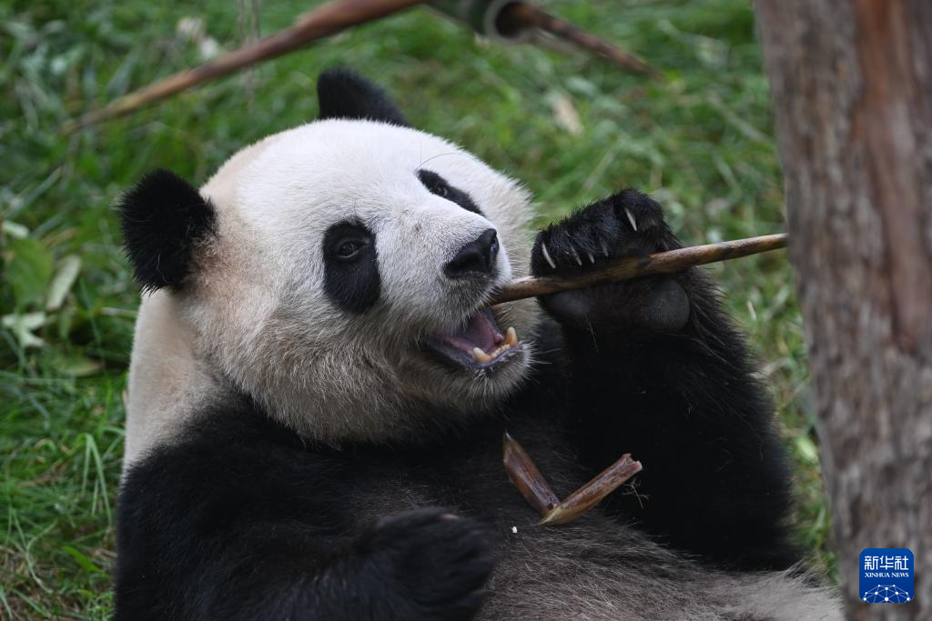 9月17日,在西宁熊猫馆,一只大熊猫在吃竹子。