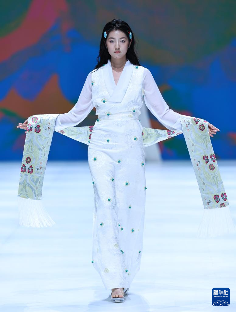 9月17日,模特在闭幕秀上展示玉树地区设计师设计的藏族服饰。