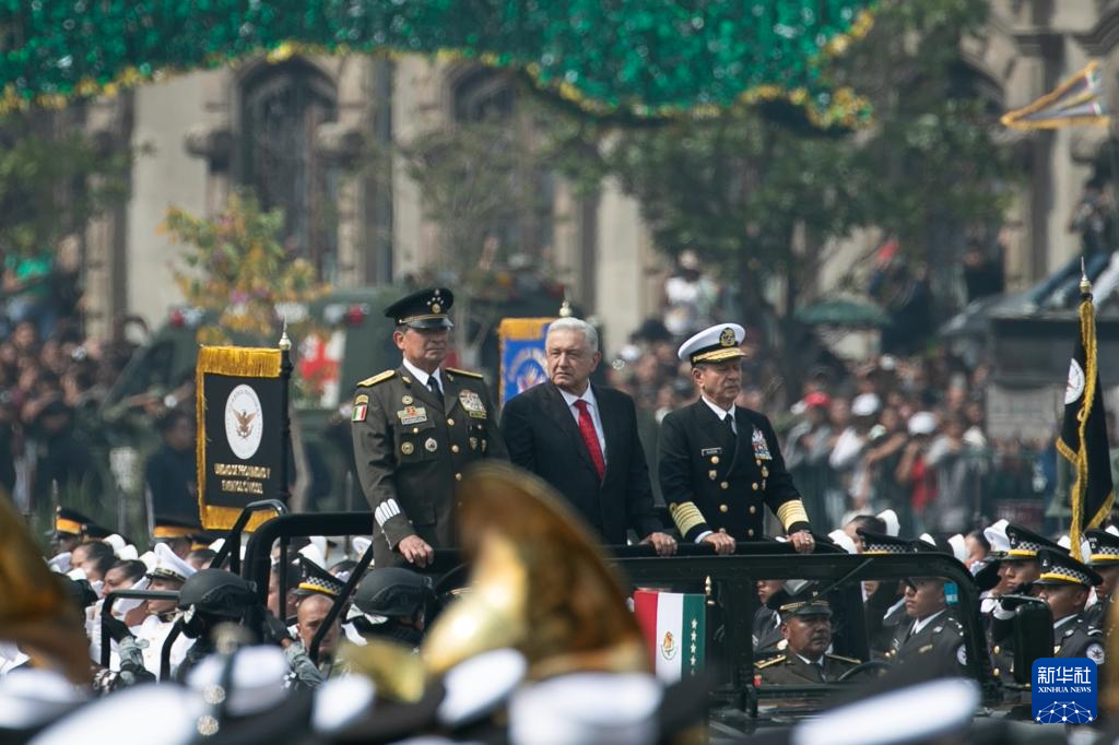 9月16日,在墨西哥首都墨西哥城,墨西哥总统洛佩斯参加独立日阅兵。