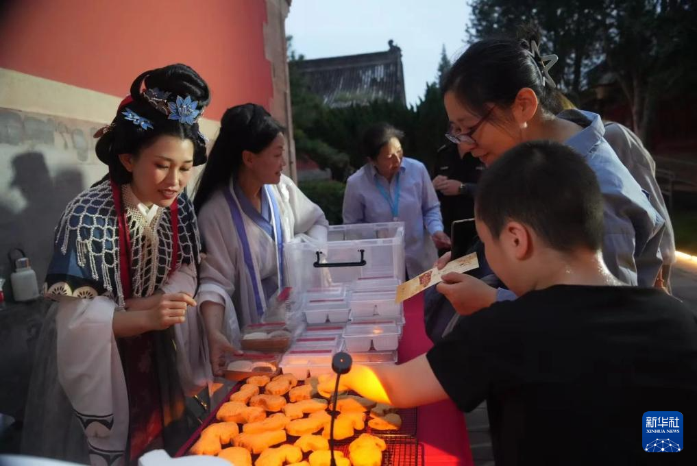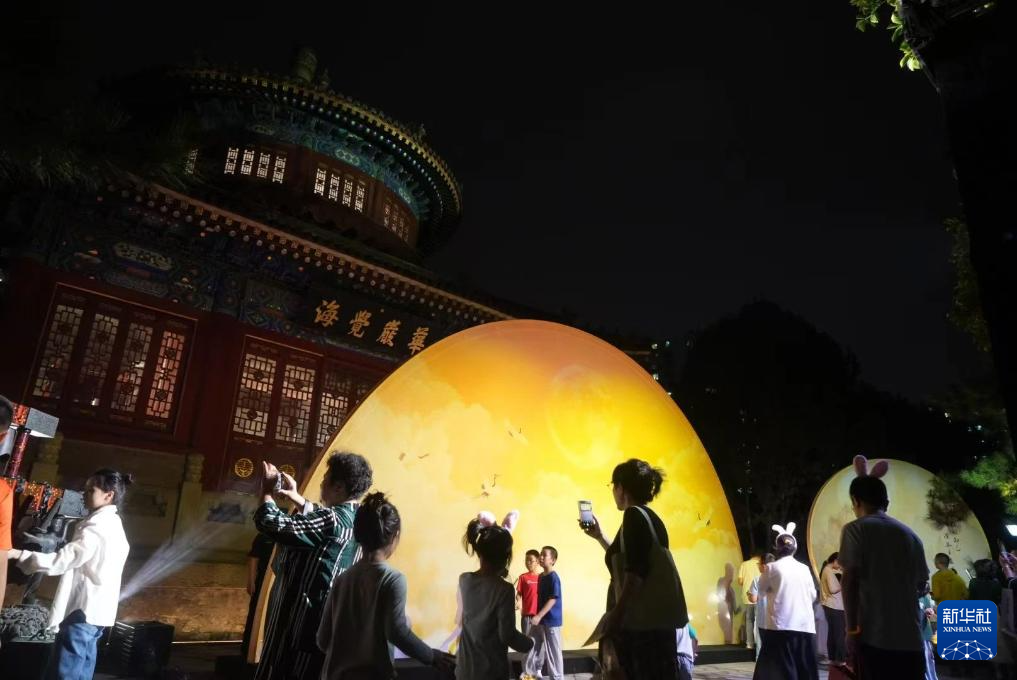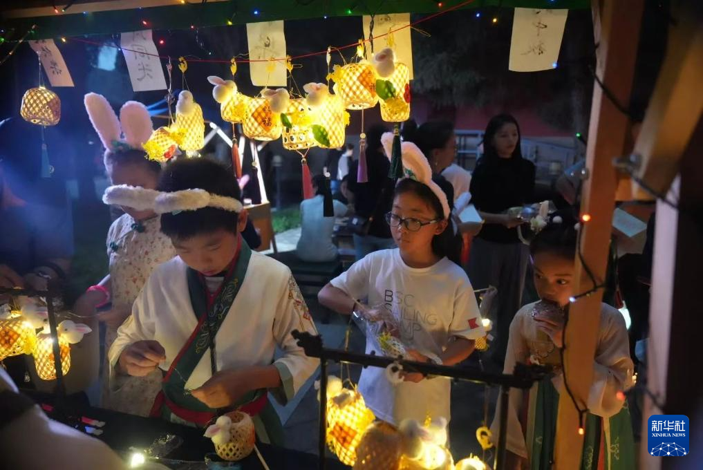 当日,北京大钟寺古钟博物馆举办中秋主题活动,邀请游客做月饼,染漆扇,赏古钟。