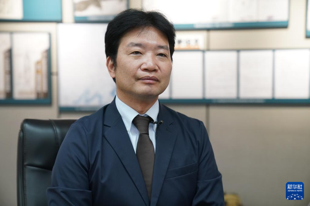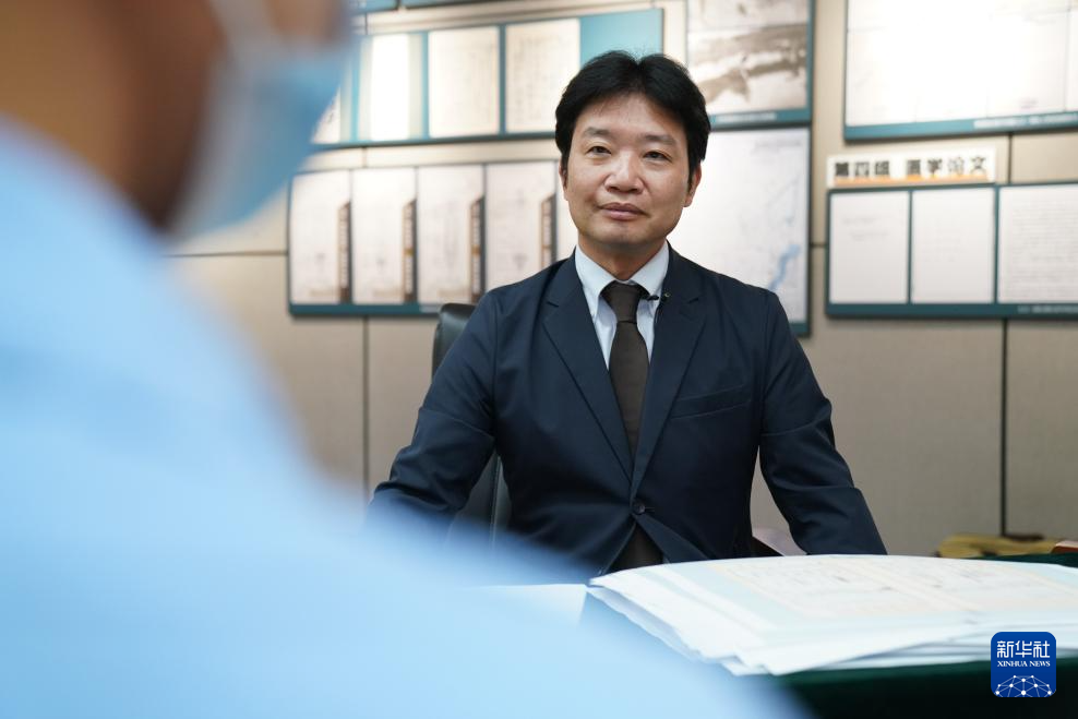 日本学者、黑龙江外国语学院特聘教授松野诚也在侵华日军第七三一部队罪证陈列馆新闻中心接受采访(9月17日摄)。