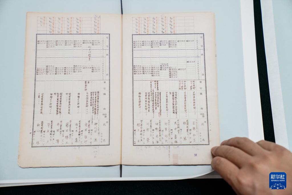 在侵华日军第七三一部队罪证陈列馆新闻中心,日本学者、黑龙江外国语学院特聘教授松野诚也展示《陆军高等文官名簿 陆军书记官 陆军技师》影印件资料(9月17日摄)。
